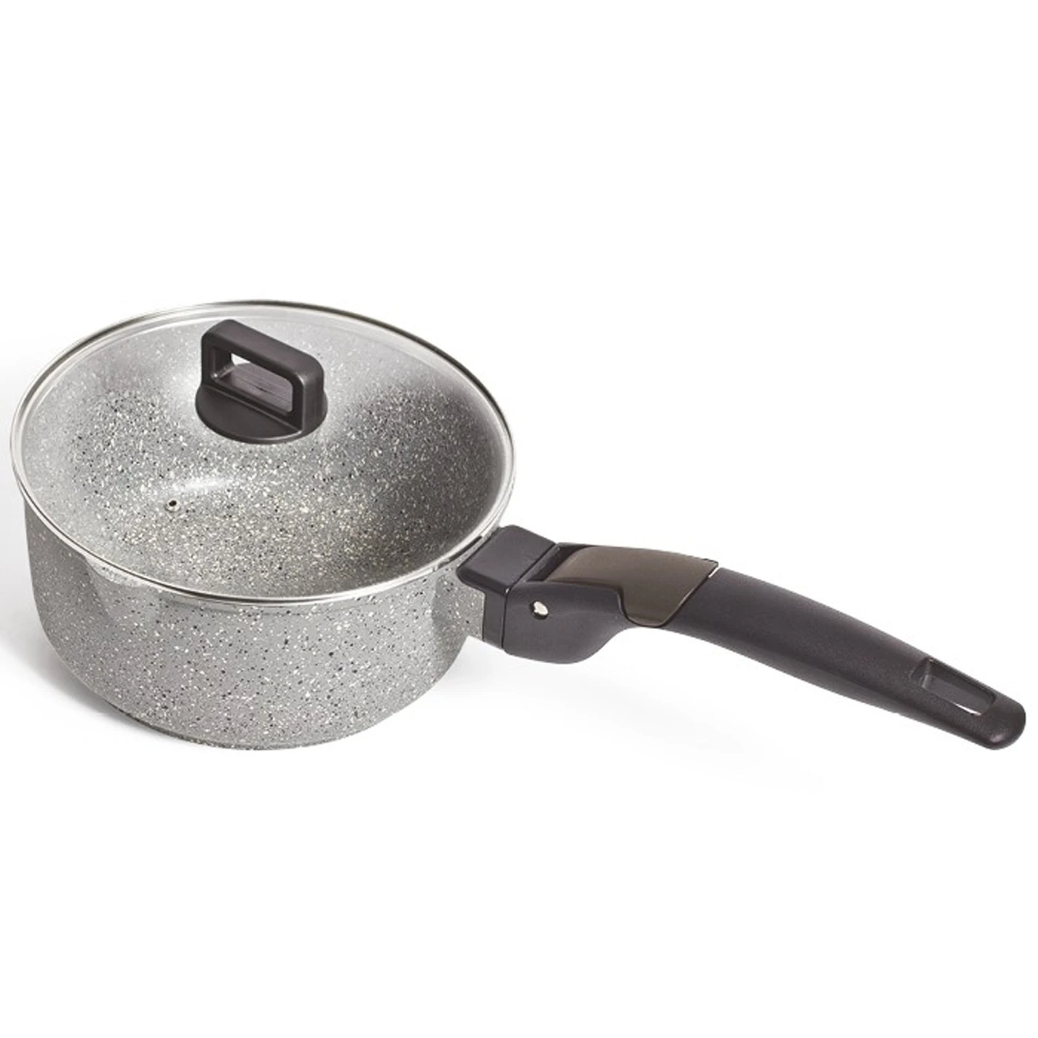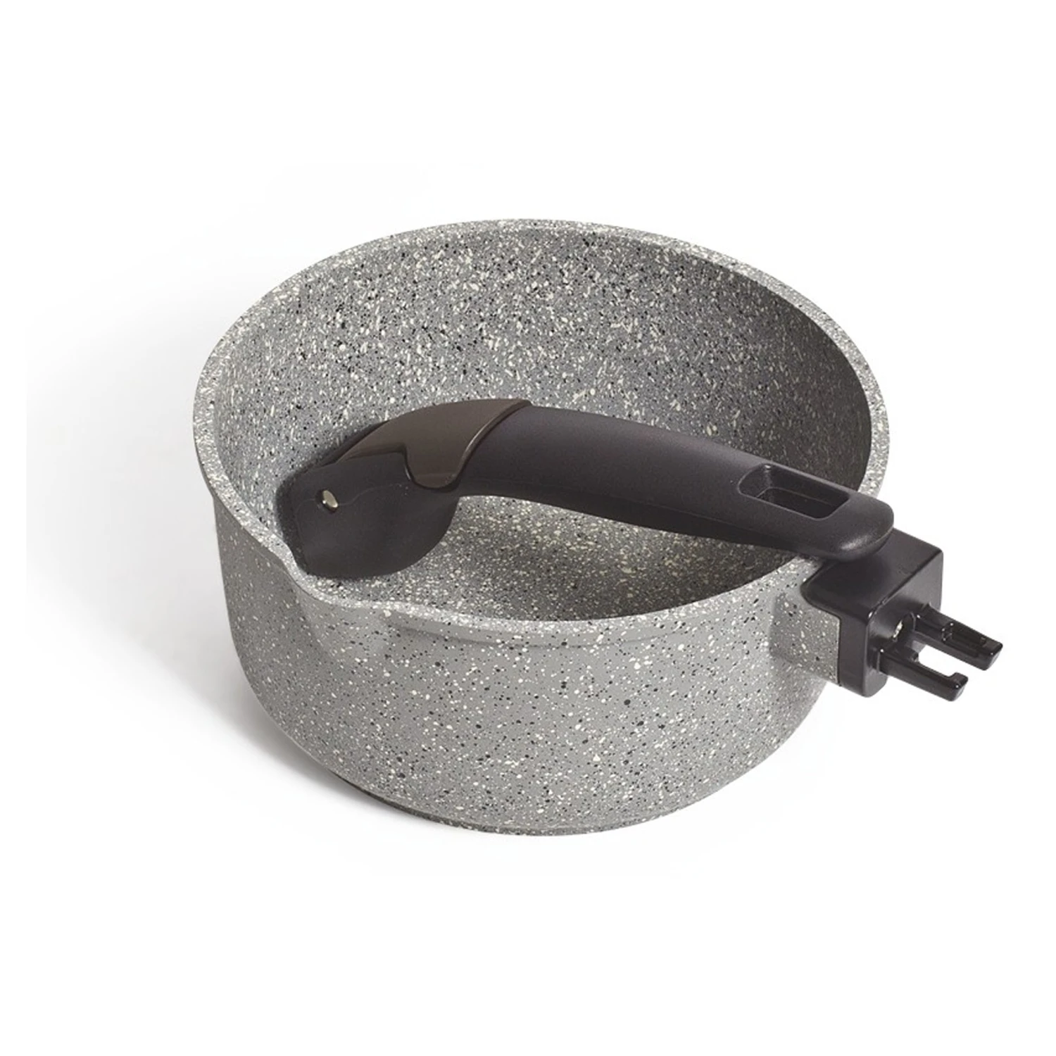 Versatile, lightweight compact cookware range. Each product sports a stylish triple coated nonstick cooking surface. The patented easy flip and locking handle mechanism allow for easy storage. Suitable for induction, electric & gas cooktops.