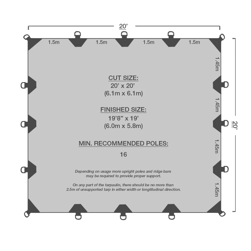 - Cut Size: 20′ x 20′Â (6.1m x 6.1m)