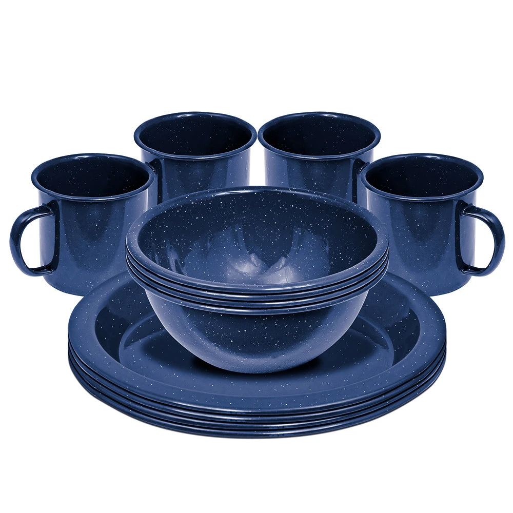 This Campfire enamel tableware set for four is great for home, picnics, camping and travelling.