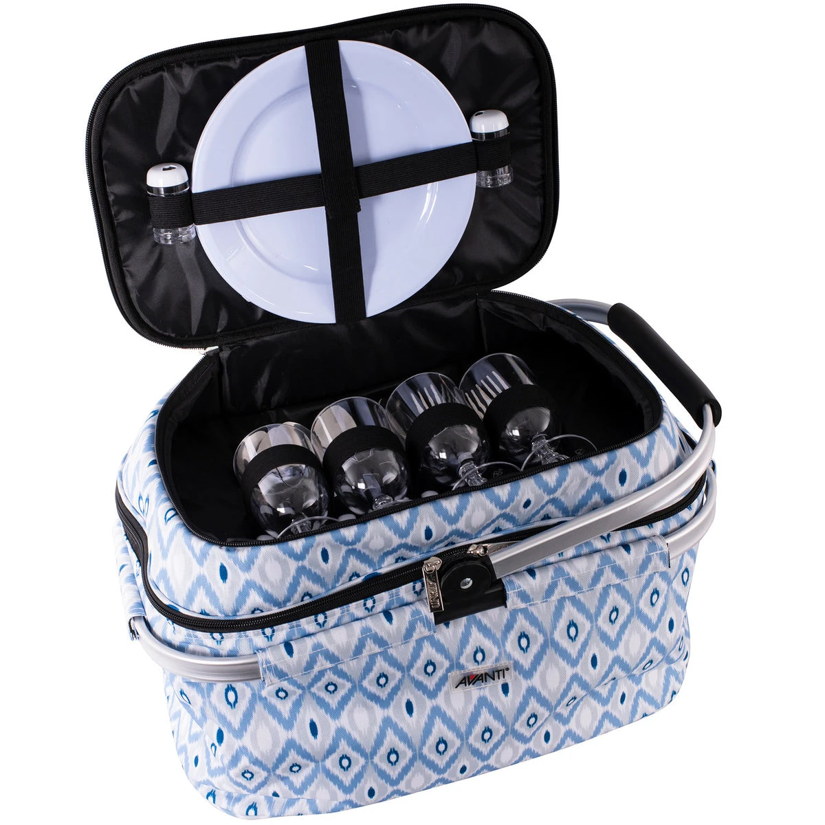B‌e all ready for your next picnic, camping trip, or day out at the beach with the Avanti Insulated Picnic Carry Basket. This insulated picnic carry basket keeps your food fresh at an optimum temperature for longer for your enjoyment. The carry basket is also equipped with picnic essentials like cutlery, plates, salt and pepper shakers, and unbreakable wine glasses. All you’ll need to do is to pack your food and beverages, and you are ready to go!