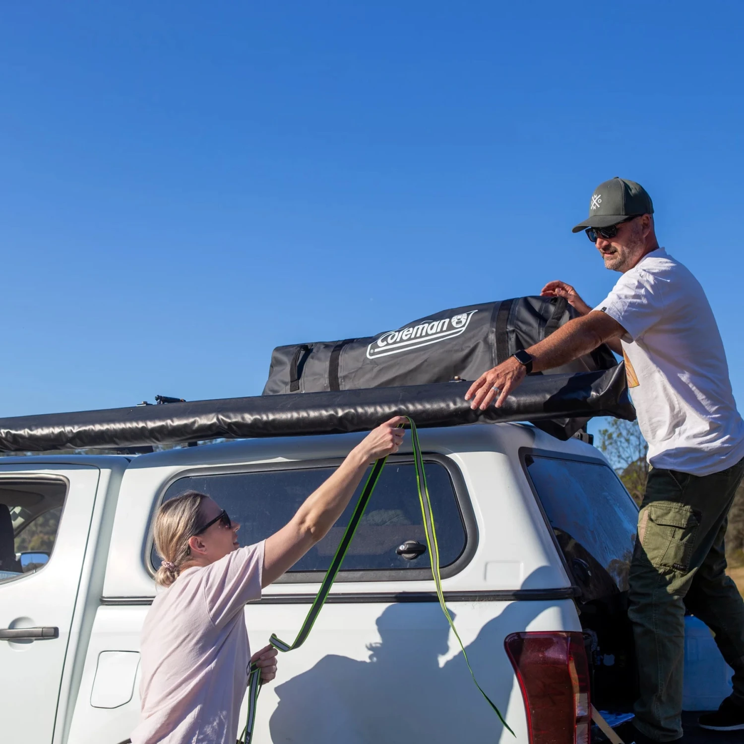 Protect your precious tent from dirt and rain with a Coleman Heavy-duty Tent Dry Bag. Compatible with any Coleman tent, this bag is 100% water-proof with seam-sealed reinforced handles for easy carrying or to secure the bag to your vehicle. The heavy-duty click release buckle ensures the bag is sealed and secure, while the compression straps keep the bag compact. With a 40 kg weight capacity, this bag protects bulky camping gear from the elements while in storage or transport.