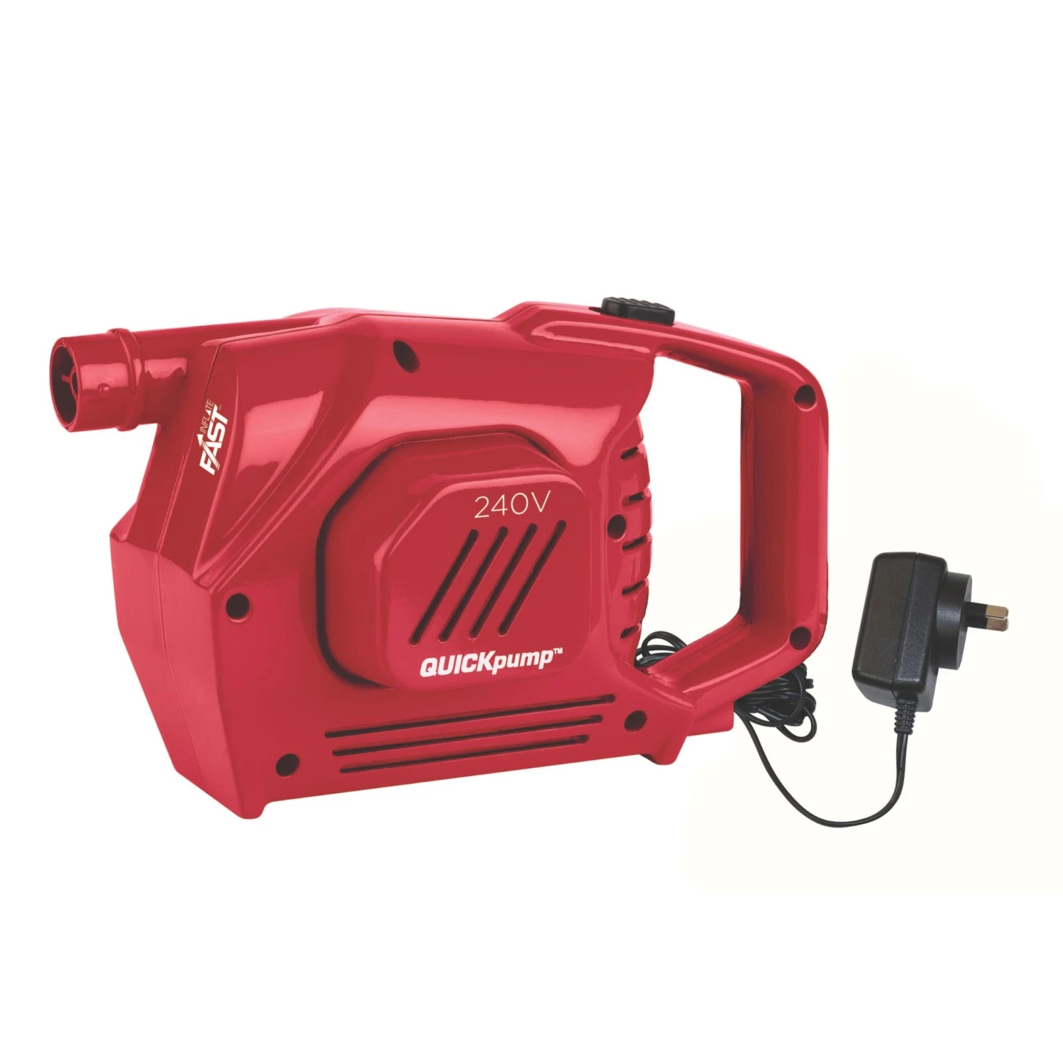Whether it is an airbed or an inflatable kayak, the QuickPump is an easy way to inflate quickly with no effort. The Coleman QuickPump has a full range to suit your needs, from rechargeable to battery. The range has been given a facelift and with the shiny new look come increased performance to match. The 240V QuickPump is perfect for at home us, or locations where you have access to power.