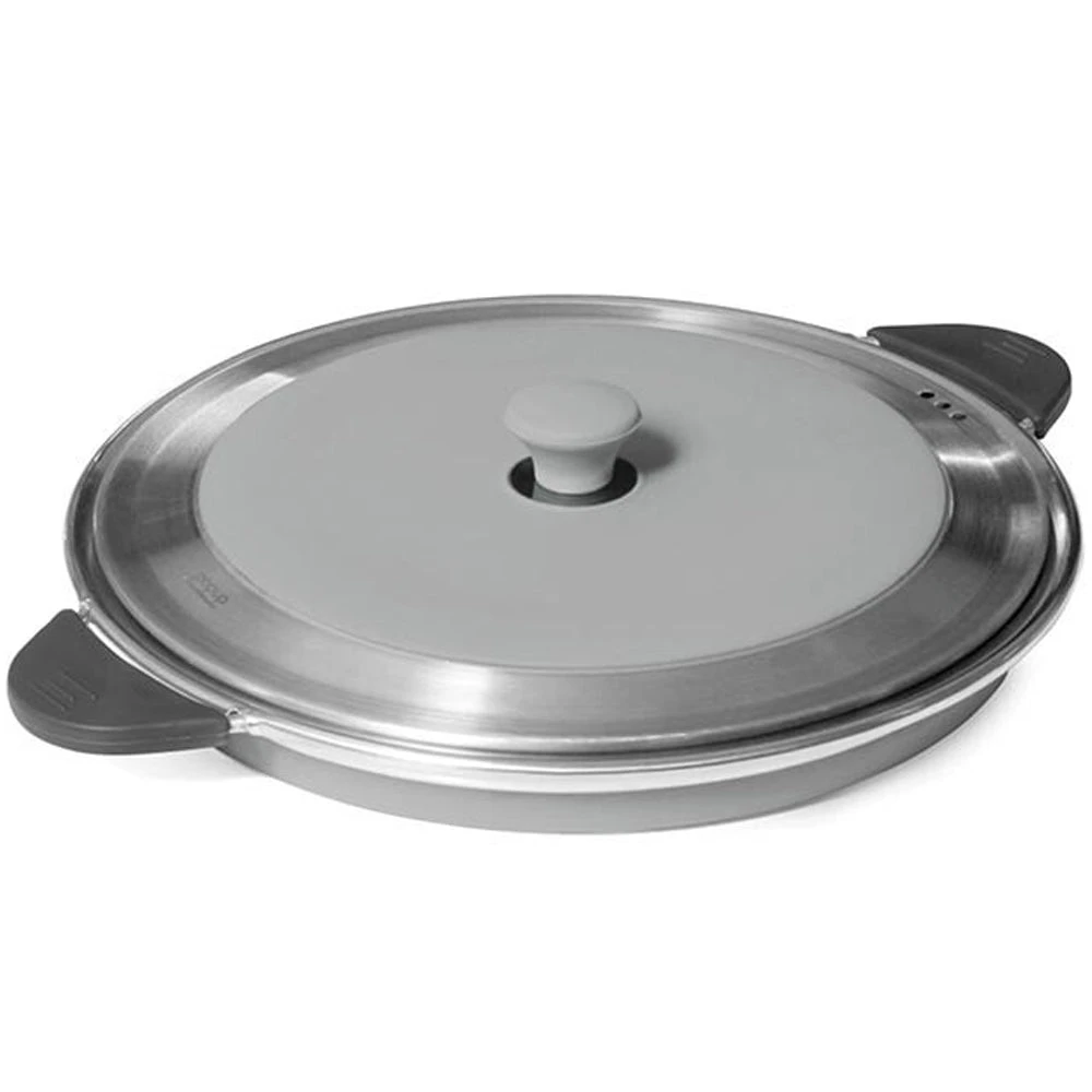 The silicone side walls collapse for storage, shrinking the pot to about a third of its expanded size. The stainless steel base ensures quick and even heating and can safely be used on any low heat source. The silicone walls are also naturally non-stick, making clean up a breeze. The snug fitting silicone/stainless steel lid keeps heat and flavour in while the silicone handles provides a secure grip. Perfect for caravans, camping and home kitchens where space is a premium.