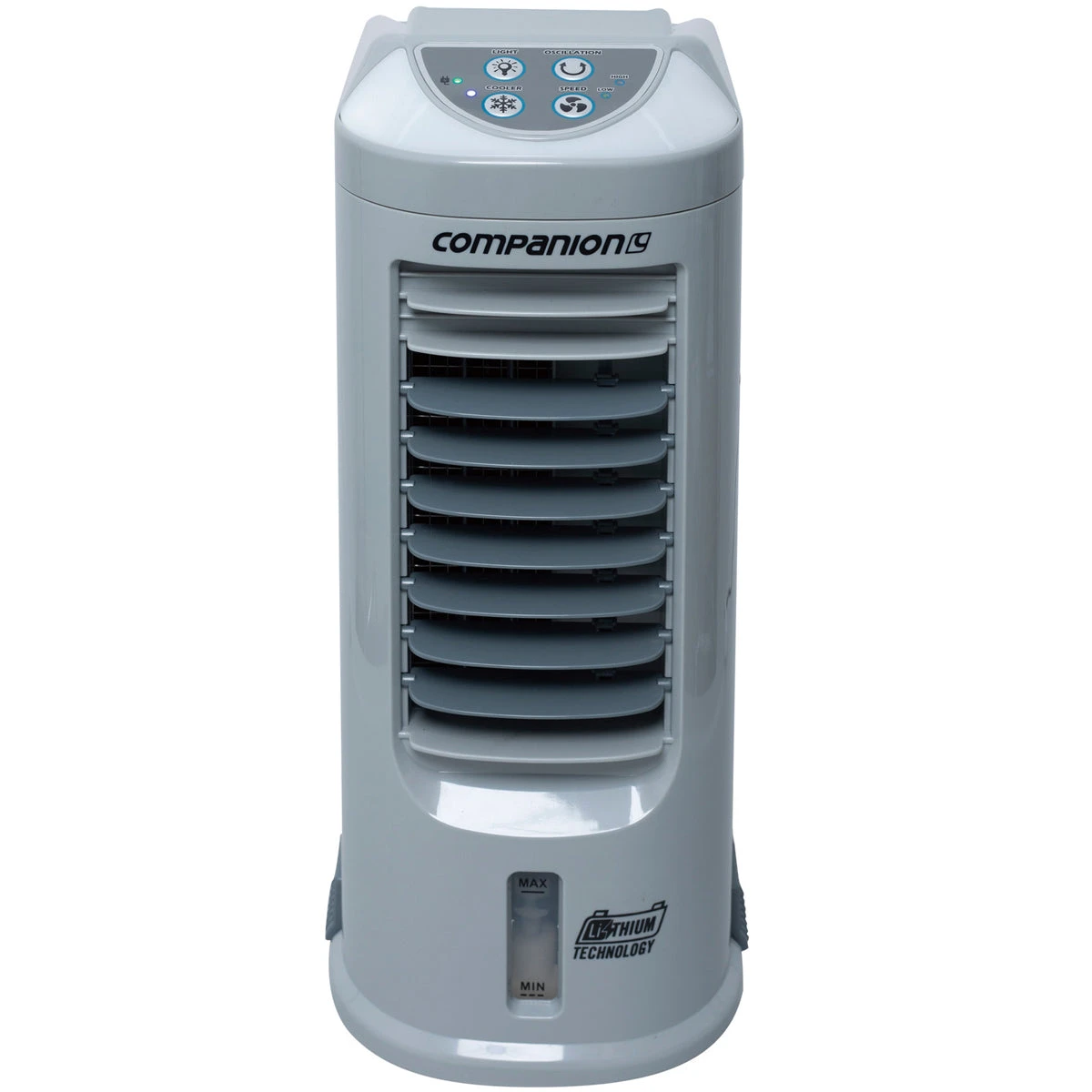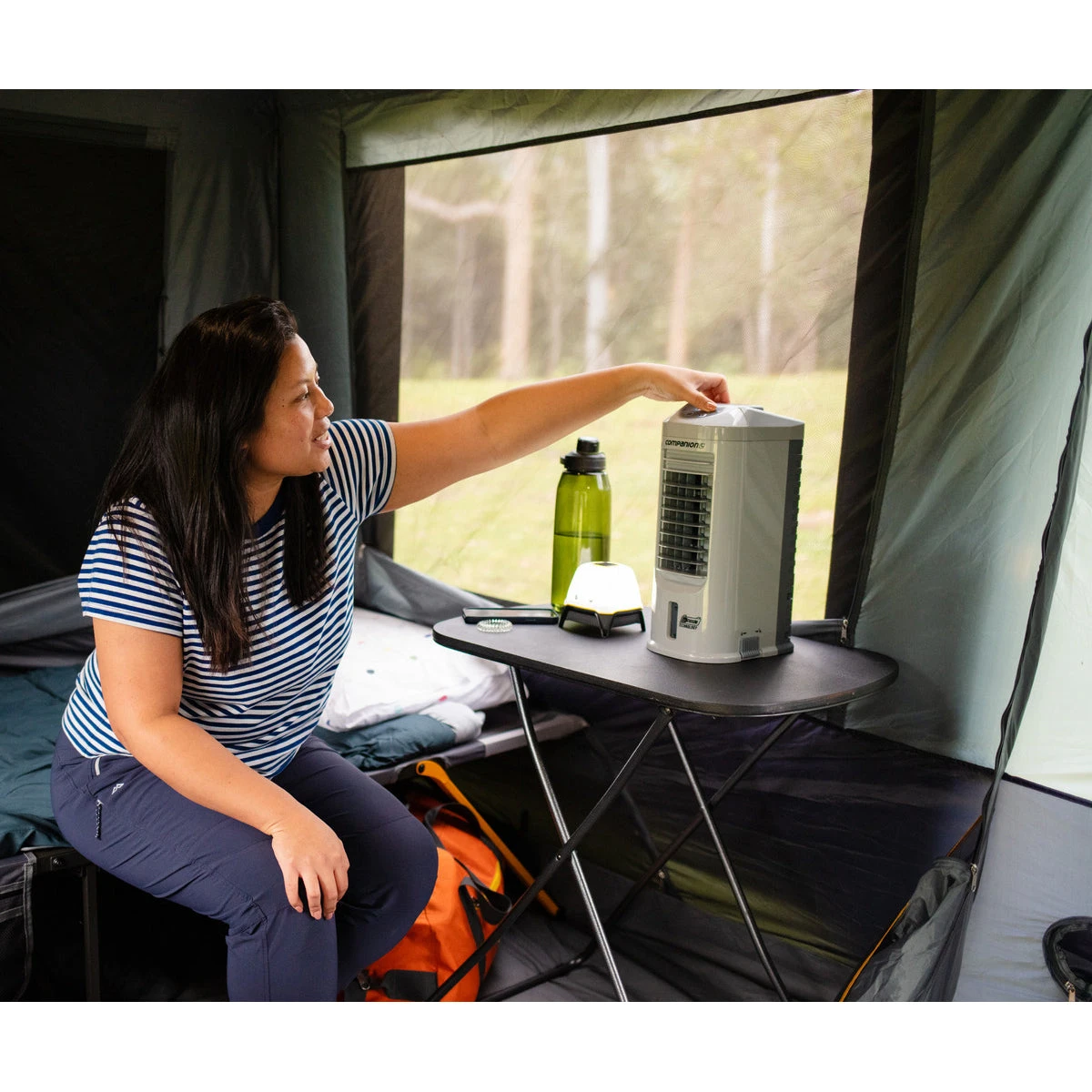 The lithium powered Mini Evaporative cooler is a compact and lightweight solution for your cooling needs, giving you control with two fan speeds and oscillating functionality.