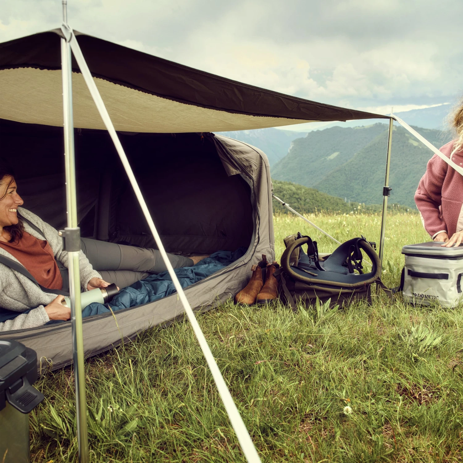 Jump out the car and set up camp with the Dometic Pico FTC. Featuring an integrated inflatable mattress and durable inflatable frame, the Dometic Pico is the ideal all-in-one swag for couples and solo campers. The convenient carry bag includes backpack straps for easy transport on foot over short and longer distance. The advanced polycotton material provides protection from the elements and ensures you remain comfortable and dry throughout your camping trip.