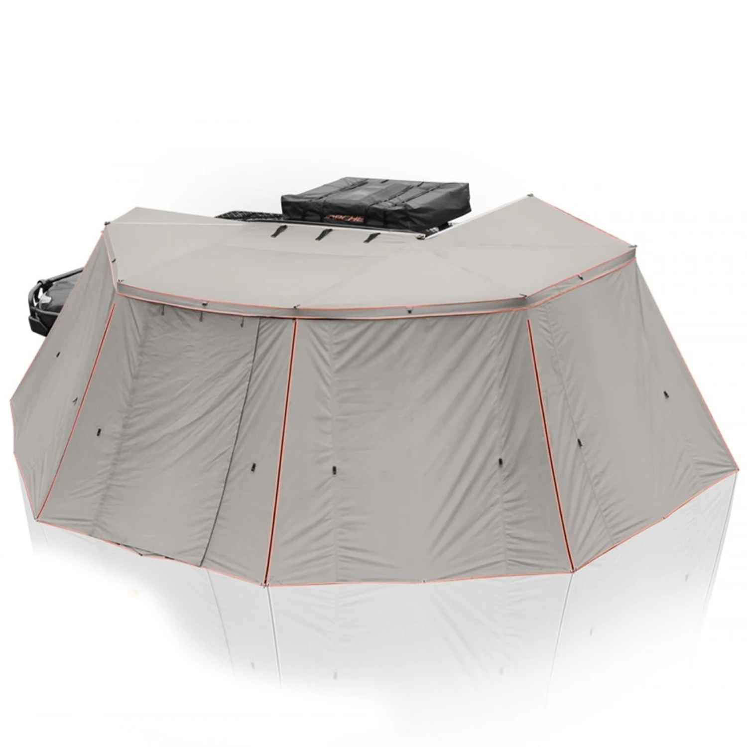 Made from Darche’s proven and hard wearing proofed poly cotton ripstop canvas, a strong light weight box tube alloy rafter system, and pivoting from heavy duty steel and alloy swivel hinge system, the Eclipse 270° Awning will quickly become a favourite must-have for all serious tourers and campers alike.