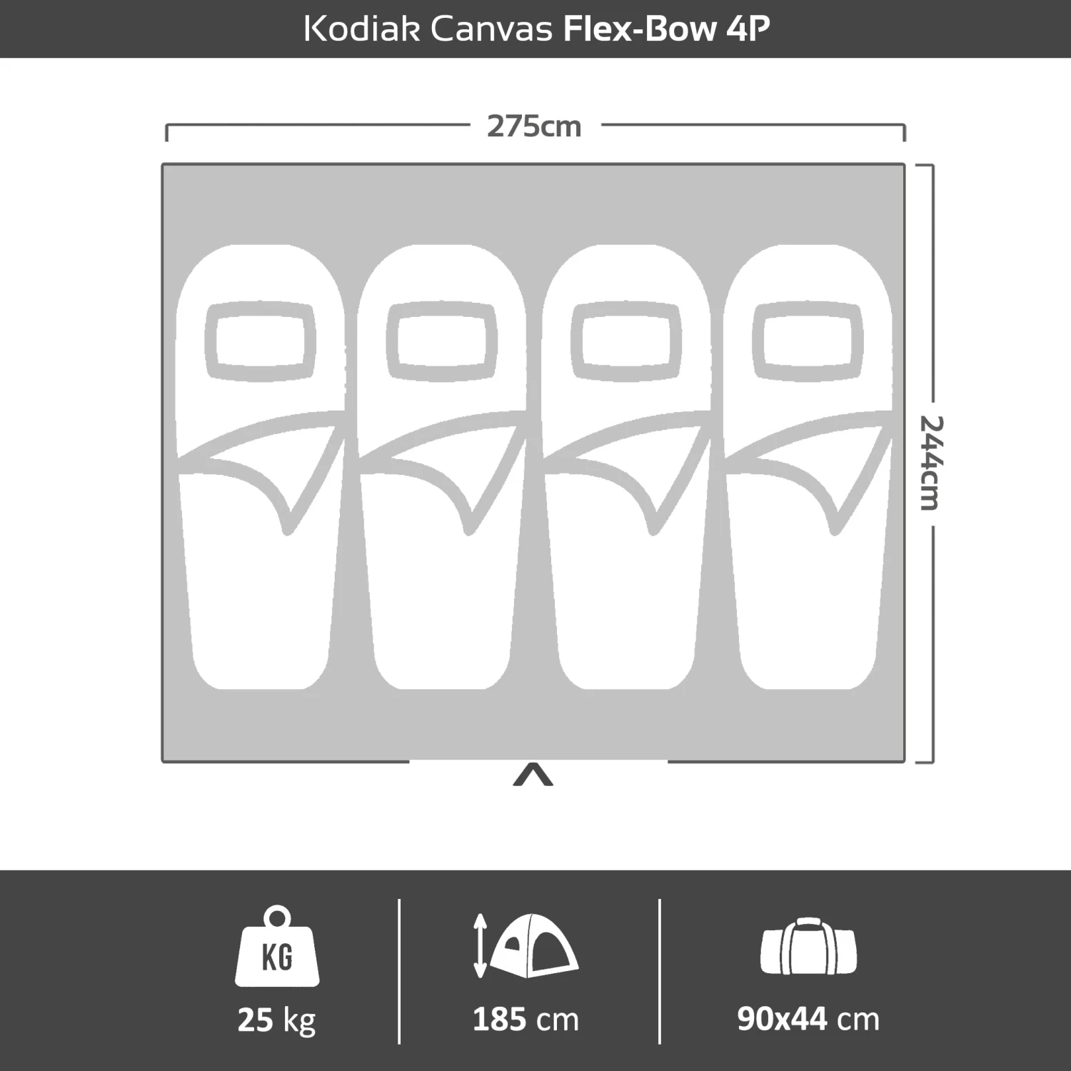 - Flex-Bow Frame: Exceptionally sturdy. Keep tent taut. Quick and easy, one-person, setup.
