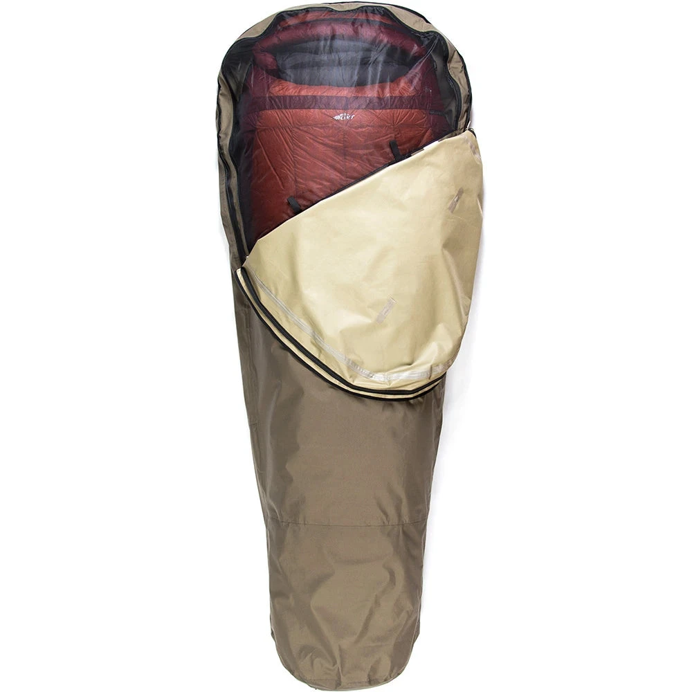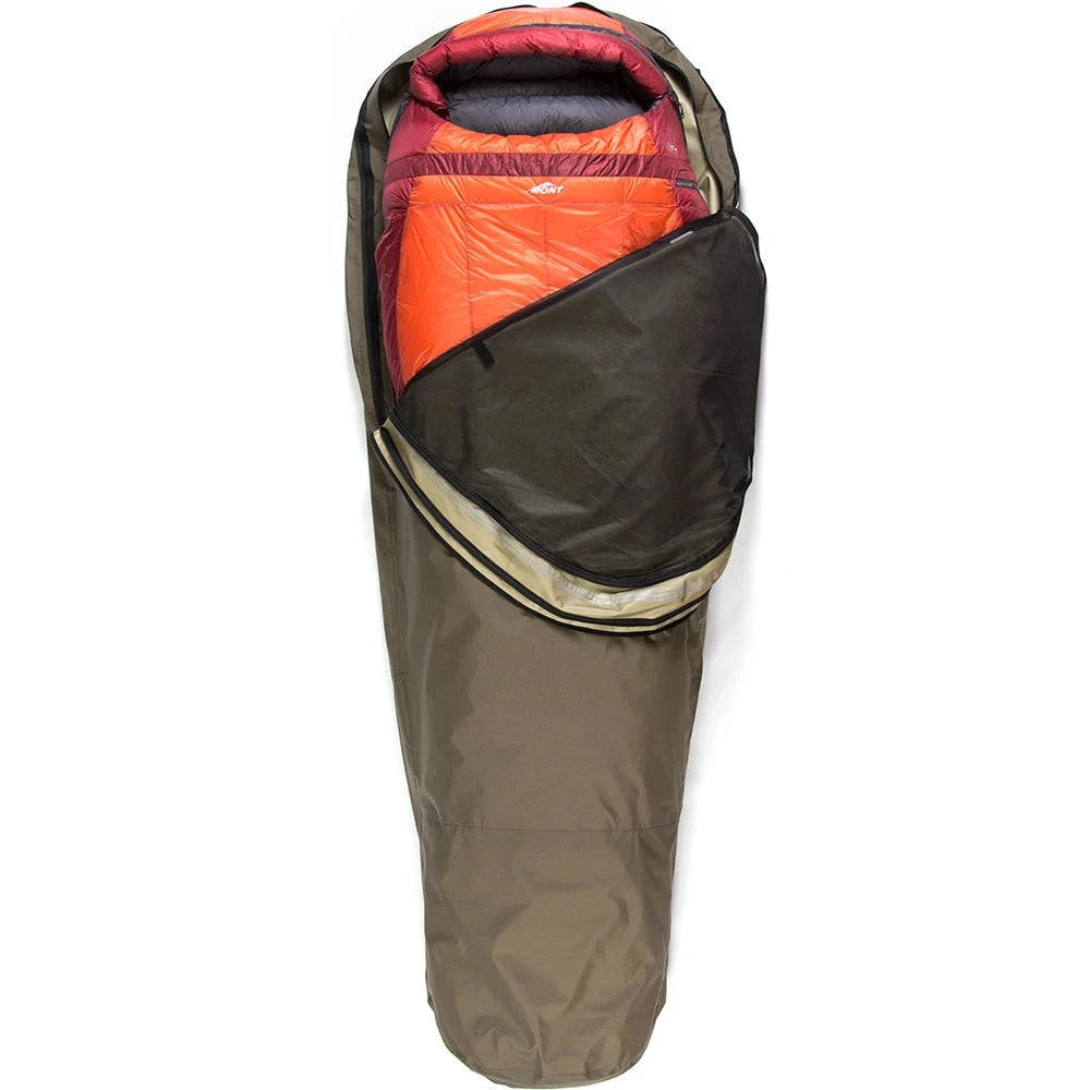Climbing in and out is made easy with a large asymmetric opening. The Hibernator Bivy Bag allows quick ventilation, with double ended YKK #5 zips on both the waterproof Hydronaute Pro hood, and the bug-proof mesh interior. Zips are recessed under waterproof covers, ensuring maximum weather protection while maintaining ease of access.