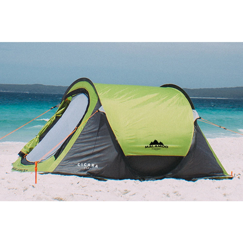 A perfect companion for a quick trip to the beach or bush, a spontaneous last-minute getaway, or a summer festival road trip. The Malamoo Cicara packs flat and is lightweight, making this tent easy to pack into a car and easy to carry when you arrive. You’re set-up in just three seconds.
