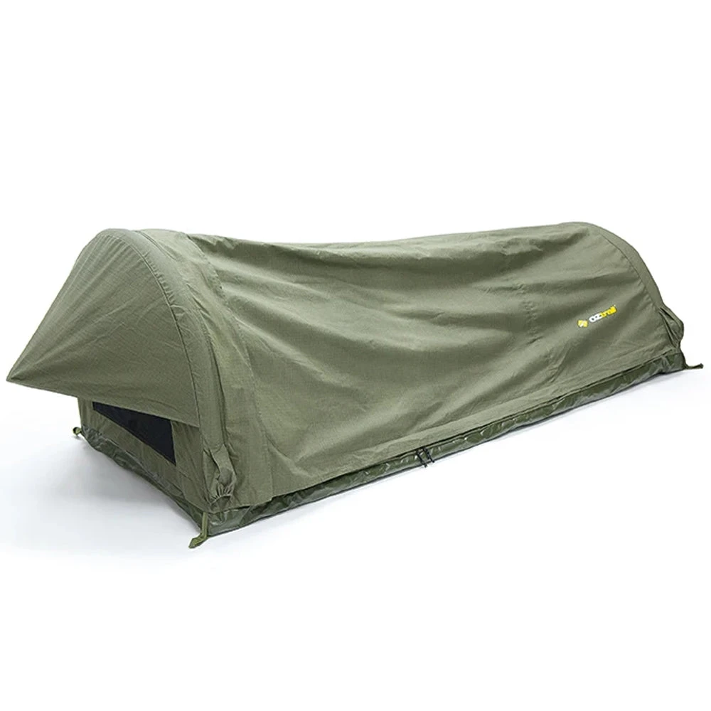 A revolution in swag construction, combining the ease and weight reduction of an inflatable air pole system with the rugged durability of Ripstop canvas for a simple to set up sleeping solution.