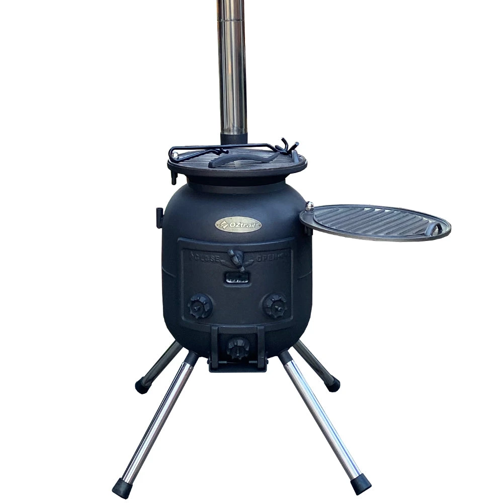 The OZtrail Outback Cooker is a portable wood fired stove designed with the outback cooker in mind. The Outback Cooker is a great way to enjoy the warmth, and cooking features of an open fire without having to use the same amount of timber.