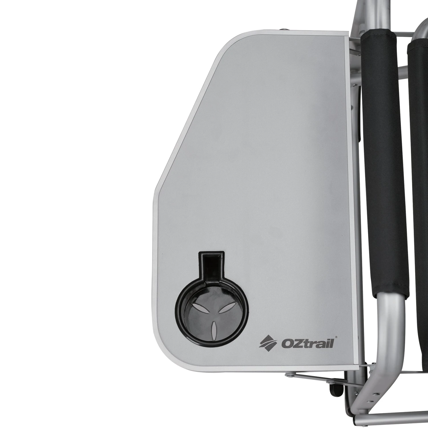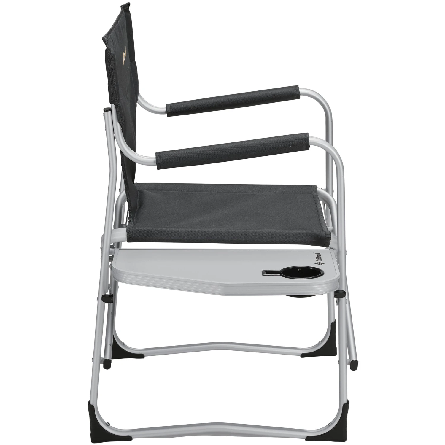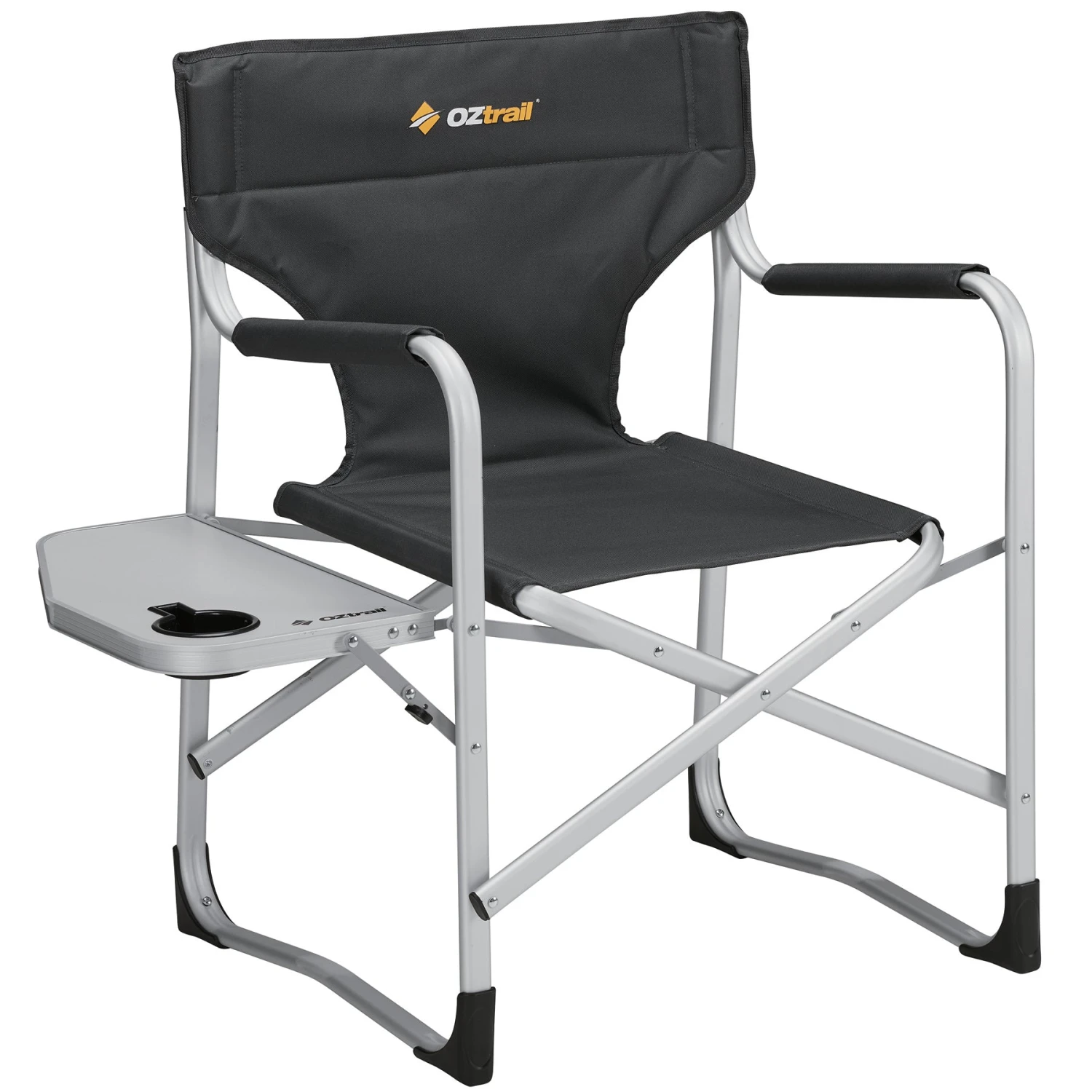 This studio directors chair is ideal for the campsite dining table or your caravan/camper. The lightweight aluminium frame and padded seating and arm rest ensure support and comfort where you need it. Folds flat for easy transport and storage.