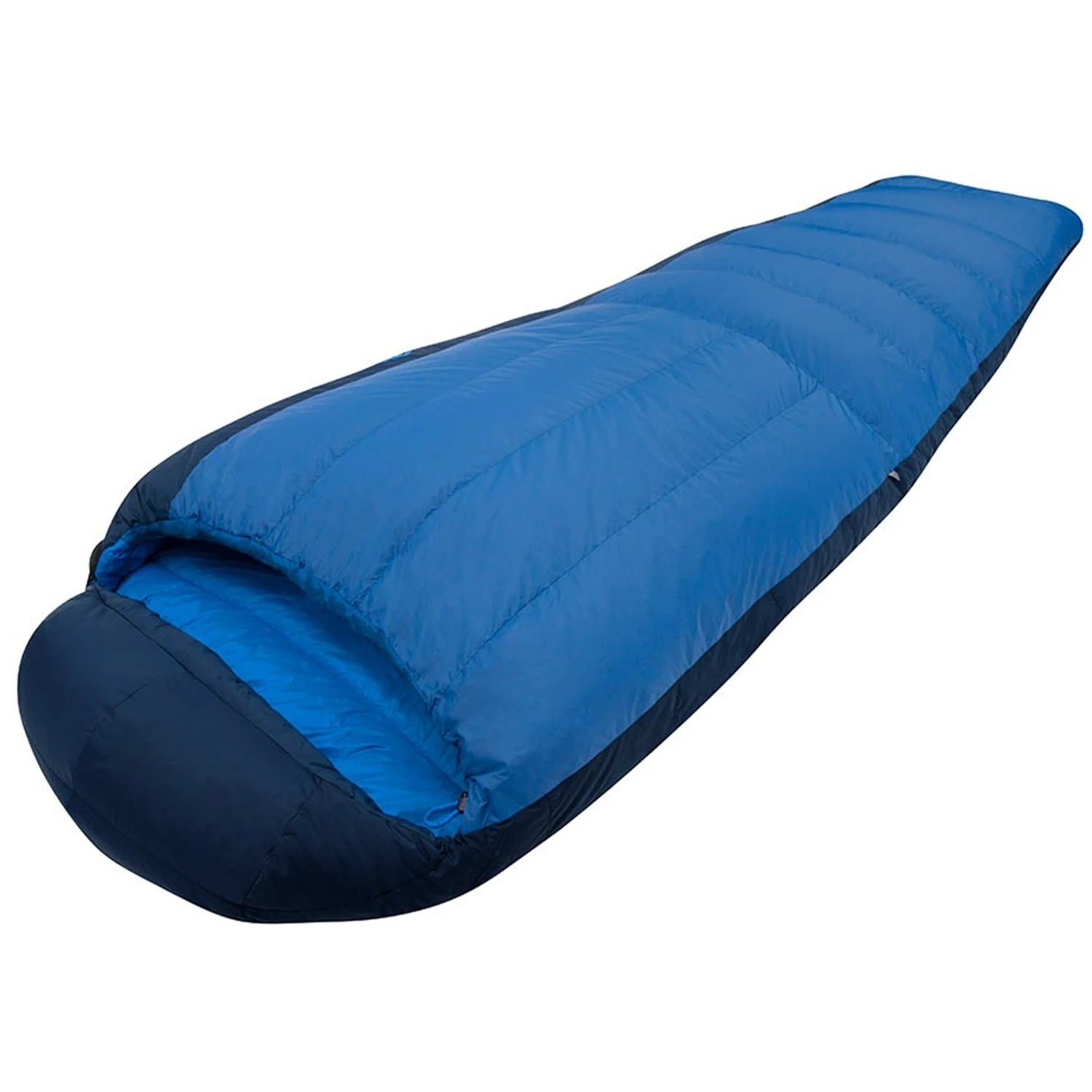 Traditional comfort and value, with an anything but traditional design approach, the Trek™ Series sleeping bags are what we grab for globe-trotting adventures on a budget. Vertical baffles over the chest section ensure the down insulati`on cannot migrate or shift to the outside of the bag during sleep, creating cold spots. A side block baffle construction maintains the 60/40 fill ratio, keeping more down on the top of the bag for maximum insulation. Lightweight fabrics reduce weight and packed bulk while the two-way #5 YKK full length side zip and separate foot zip, allows the bag to open out completely and double as a quilt. The foot zip is perfect for extra ventilation or to provide freedom of movement for your feet. The 3D side-wall baffle ensures that down can loft to the very edge of the bag, maximising insulation, while the panelled hood draws in tight when needed or lies flat for use in warmer weather. The oversized zipper draft tube uses anti-snag materials to prevent the zipper catching and the soft-touch 20D lining fabric is highly breathable yet also down proof. Completing the thoughtful design features of this classic down bag, we have included a large internal security pocket, perfect for keeping valuables close or batteries warm.