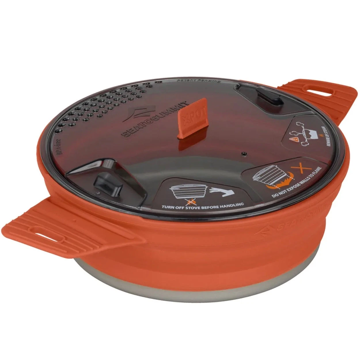 The award-winning collapsible X-Pot combines innovation, space-saving capability and functionality features ideal for space conscious campers. Design features include an embedded stainless-steel ring in the rim which creates a rigid structure to provide confidence when cooking large volumes of food, a in-built strainer in the lid and the ability to collapse into a small disc that can easily slide into a backpack or camping box and neatly nest with other pieces in the series X-series.