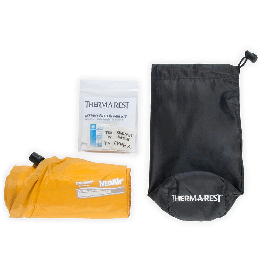The mat includes a breath-saving pump sack, compact stuff sack and field repair kit.