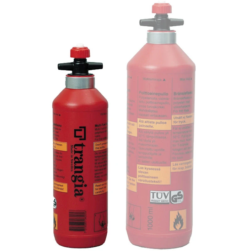 Polythene multi-fuel bottle with safety valve for safe, controlled fuel outflow.