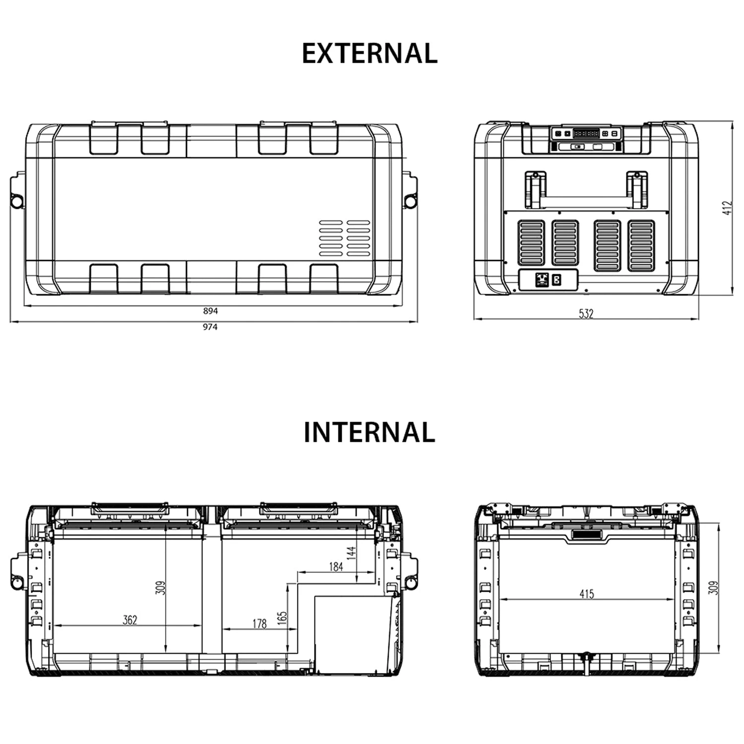 - External Dimensions:Â 974 x 532 x 410 mm (LxWxH)