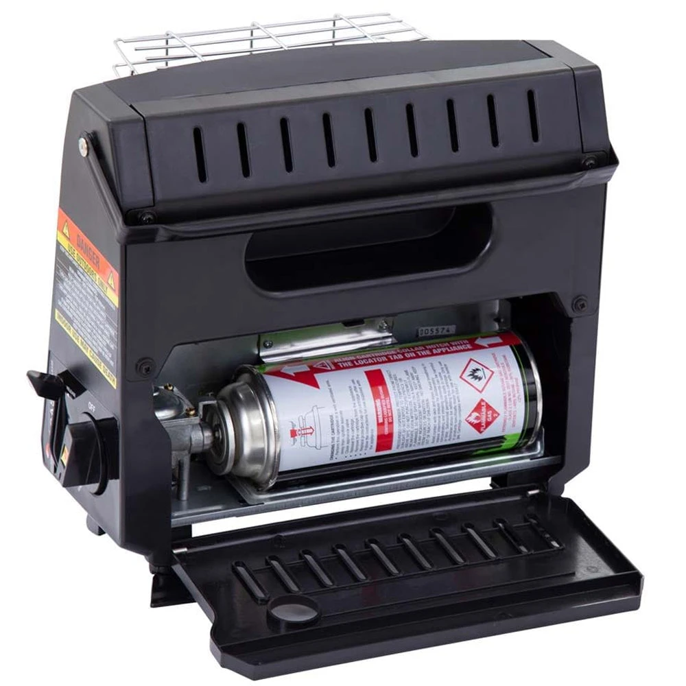 - Operates on Gasmate bayonet butane cartridge (G4210)