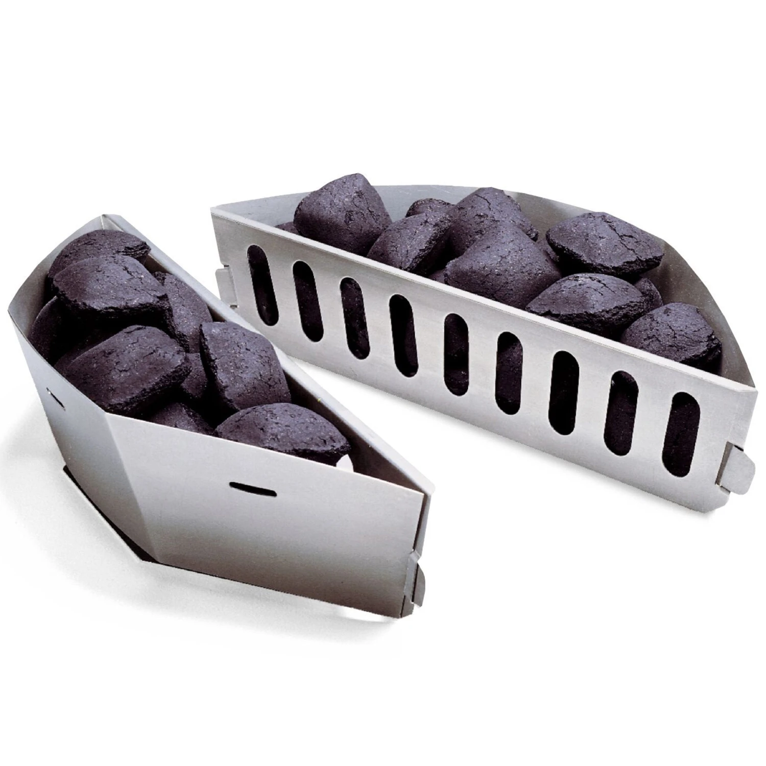 - Aluminized steel baskets organise charcoal pieces for optimised cooking performance