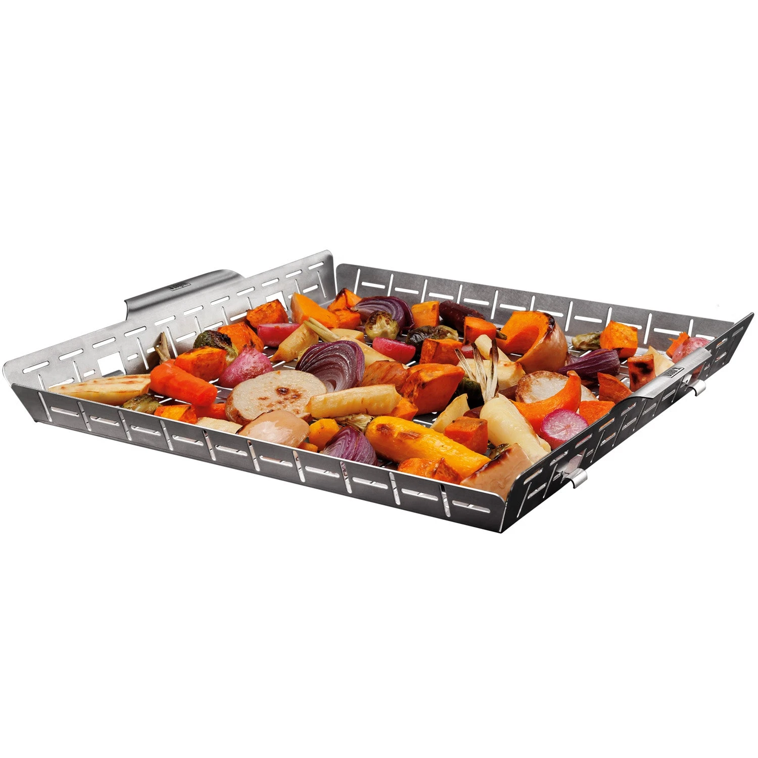 Simply replace your right-side cooking grill with the WEBER CRAFTED Grilling Basket to perfectly caramelize veggies, delicate seafood, and smaller pieces of meat. WEBER CRAFTED compatible barbecue, frame, and cooking grills required for use. ​