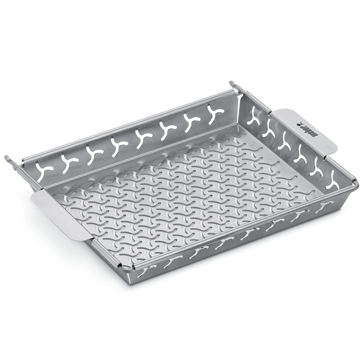 Roast your perfectly seasoned veggies, or small pieces of food, in the Elevations Grilling Basket Set while the main entrée sears underneath. The basket drops into a wire support frame that fits into the Tiered Grilling System to increase grilling capacity.