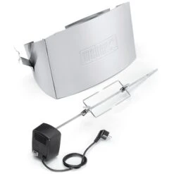 Take your repertoire to a whole new level with a Weber Family Q rotisserie. It comes complete with a rotisserie spit and two forks that can handle a whole chicken or large roast. This rotisserie is powered by a heavy duty electric motor to ensure smooth turning for even cooking all the way around.