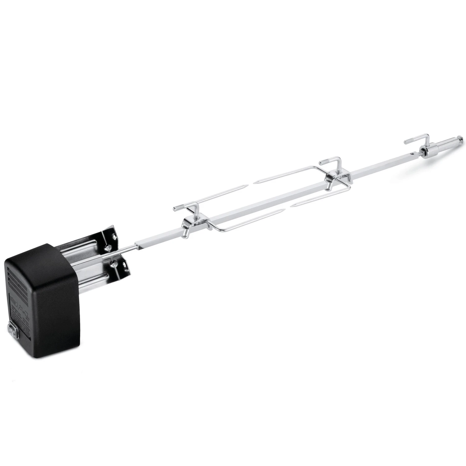 Delicious spit roasted food is easy with a Weber rotisserie. It features a heavy duty electric motor and on/off switch. The Rotisserie gently rotates food above the cooking grill, producing succulent, self-basted meat directly from your backyard kitchen.