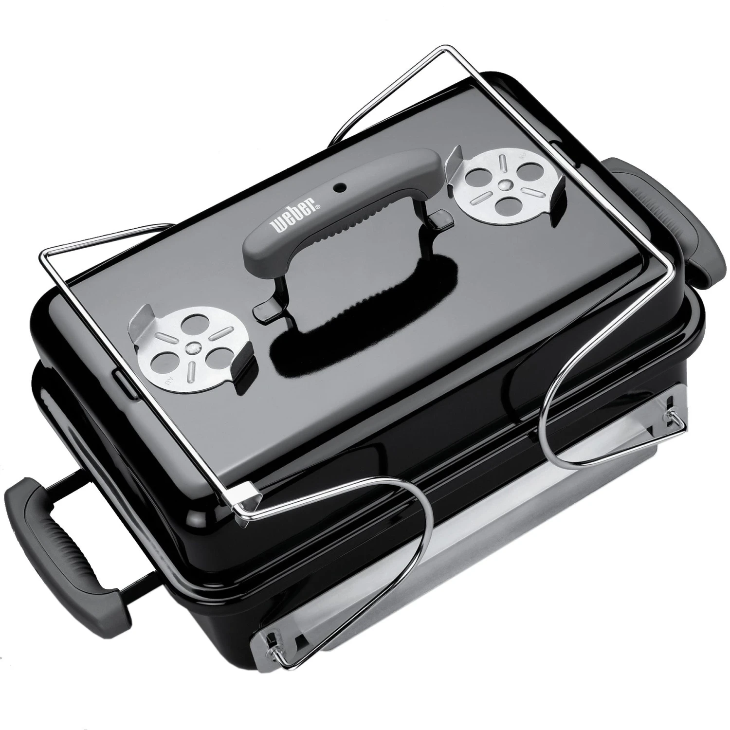 Unlike traditional hibachis, the lid enables you to smoke fish and can also be angled to act as a windbreak. The Weber Go-Anywhere has legs that fold up to hold the lid in place when carrying. A beautiful porcelain enamelled finish prevents rust and makes cleaning easy too.