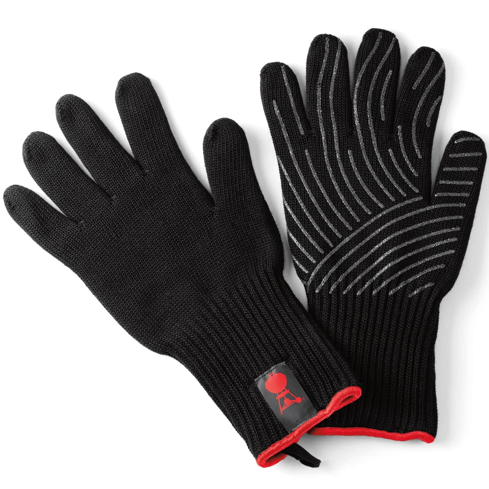 Look the part and protect your hands while doing so. The Weber Premium Gloves protect your hands from a hot barbecue, and have a silicone palm for gripping your most prized barbecue tools – a necessity for the serious barbecue master.