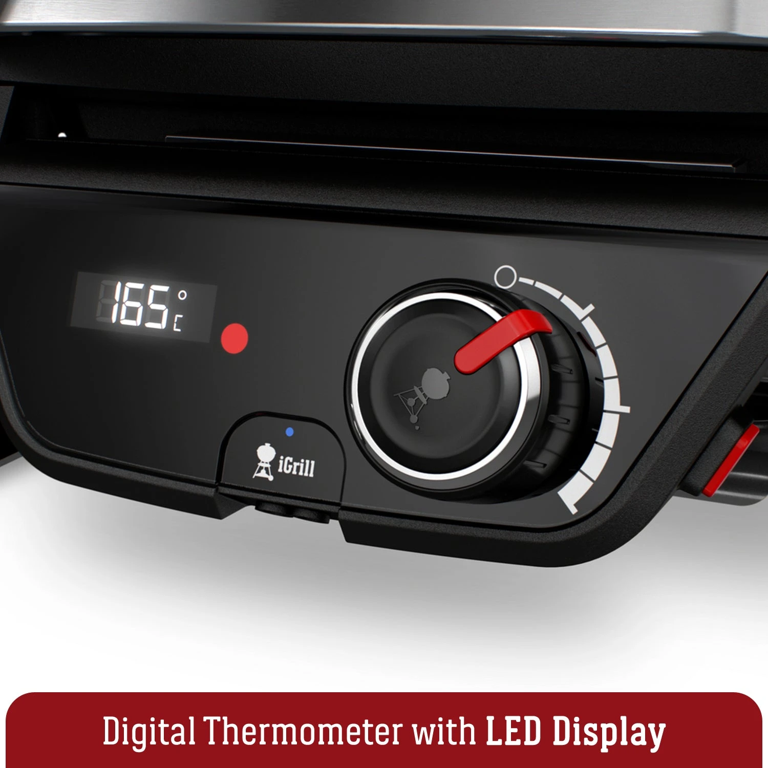 - Status indicator lights – Red lights pulse when heating and turn solid when preheat temperature is reached.