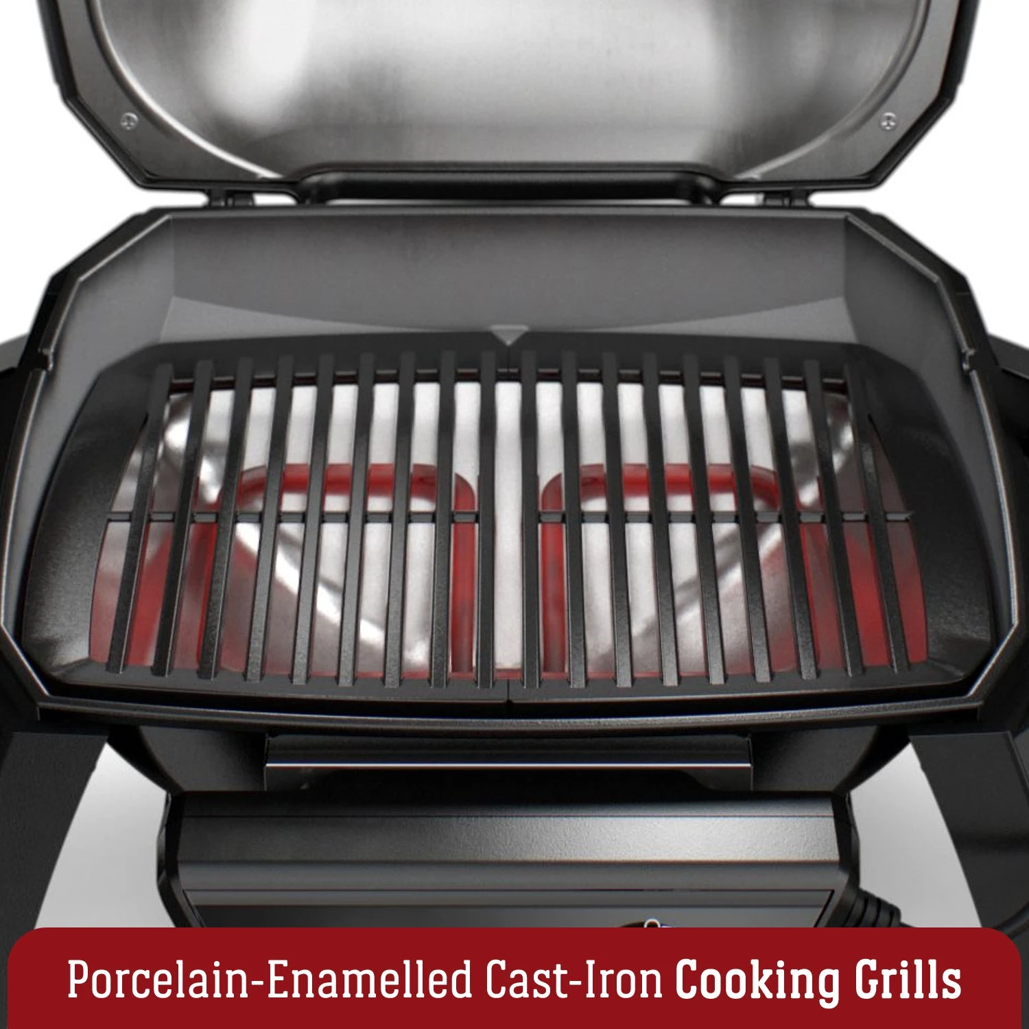 - Porcelain enamelled cast iron cooking grills – Conduct heat evenly for great searing and retain heat for fast temperature recovery.