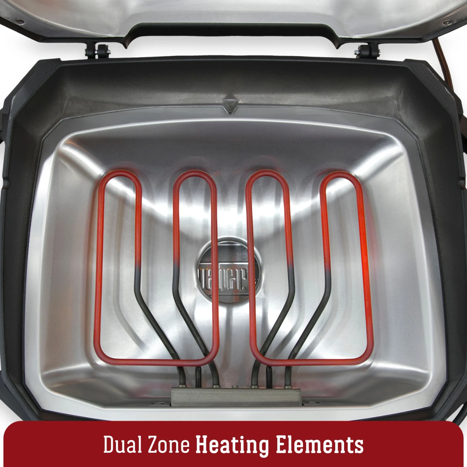 The larger Pulse 2000 has two heat zones and a larger grill space, so you have the flexibility to split your cooking area; searing steak on high heat on one side, while on the other, your side dish cooks over a lower heat.