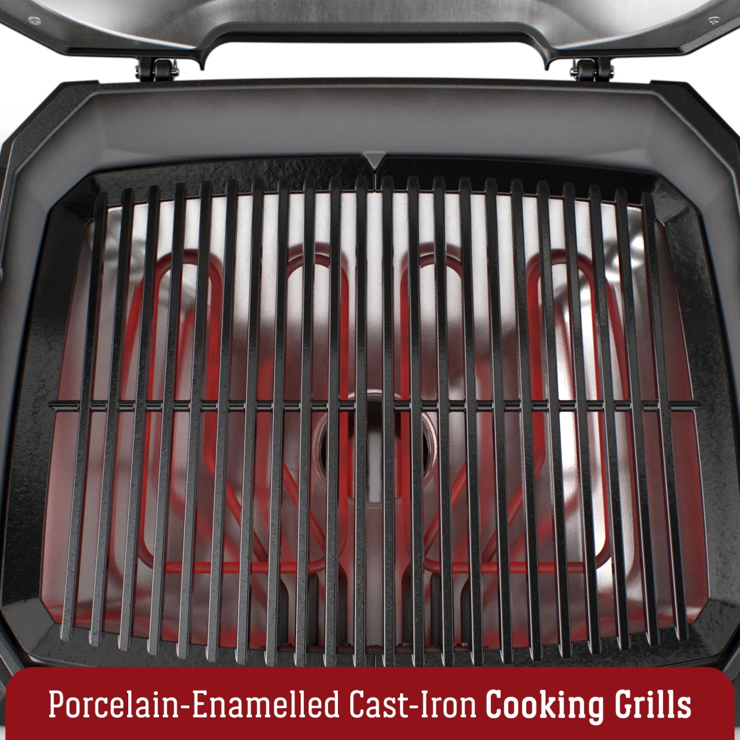 - Porcelain enamelled cast iron cooking grills – Conduct heat evenly for great searing and retain heat for fast temperature recovery.