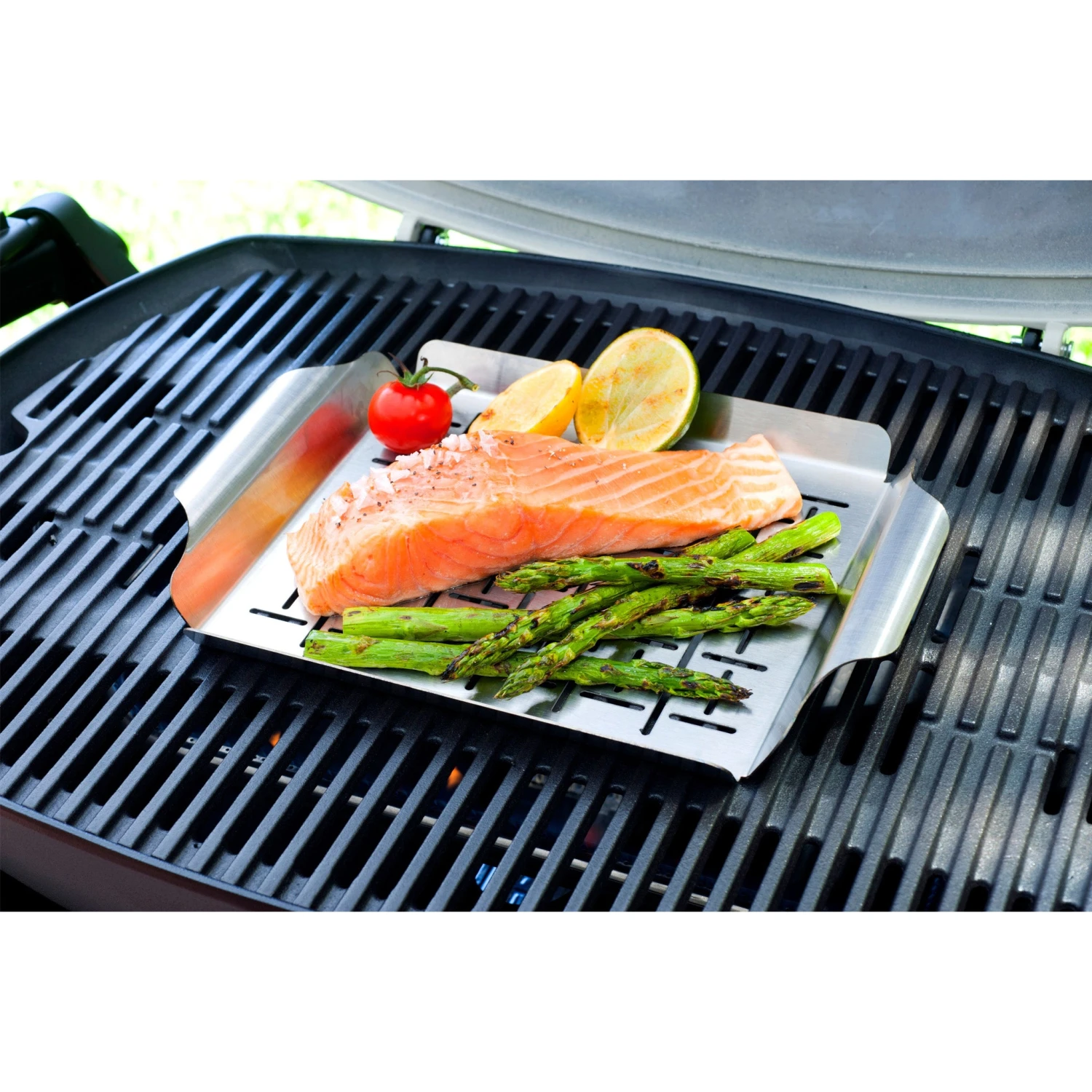 Sauté and barbecue onions, capsicum or other small side dishes while a steak sears alongside. The grill pan is perfect for delicate foods, and holds vegetables, fruit or prawns with ease, while infusing your foods with the unmistakable flavour of barbecue smoke.