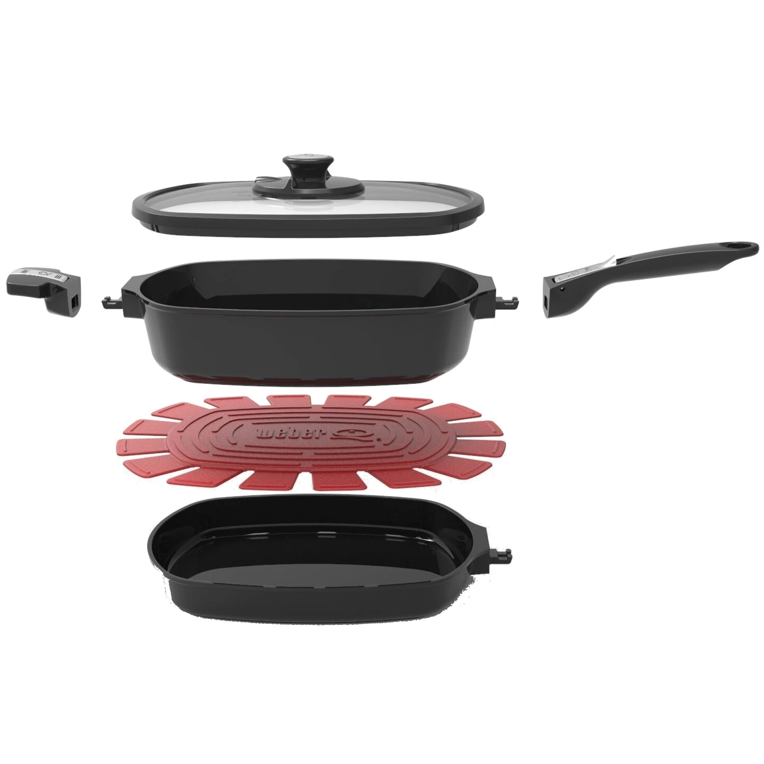 Now you really can cook everything on your Weber Q. The small frying pan and casserole pack means you can cook omelettes, schnitzels, potato bakes, desserts, and slow cook curries and stews just to name a few! Then transport safely thanks to the removable handles, and set on the silicone mat.