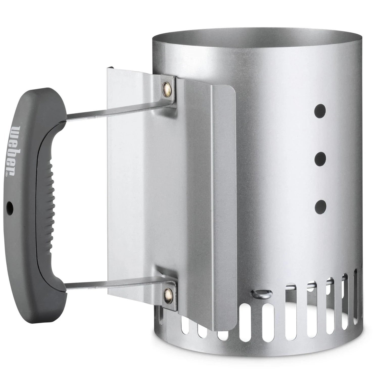 Get your fire burning quickly with the must-have tool for all charcoal barbecuers. The durable, aluminized steel Compact Rapidfire Chimney Starter has two handles to provide optimal control when pouring hot charcoal or briquettes – wearing gloves, just grab its thermoplastic handle with one hand and its top wire handle with the other, to direct fuel onto your fuel grate. Its cylindrical canister holds enough charcoal or briquettes to fill your kettle barbecue, and its cone-shaped bottom ensures that charcoal or briquettes light quickly and evenly. To use your Compact Rapidfire Chimney Starter, simply place it over a firelighter cube or crumpled newspaper, light your preferred fire starter, and you’re well on your way to burning red-hot charcoal or briquettes.
