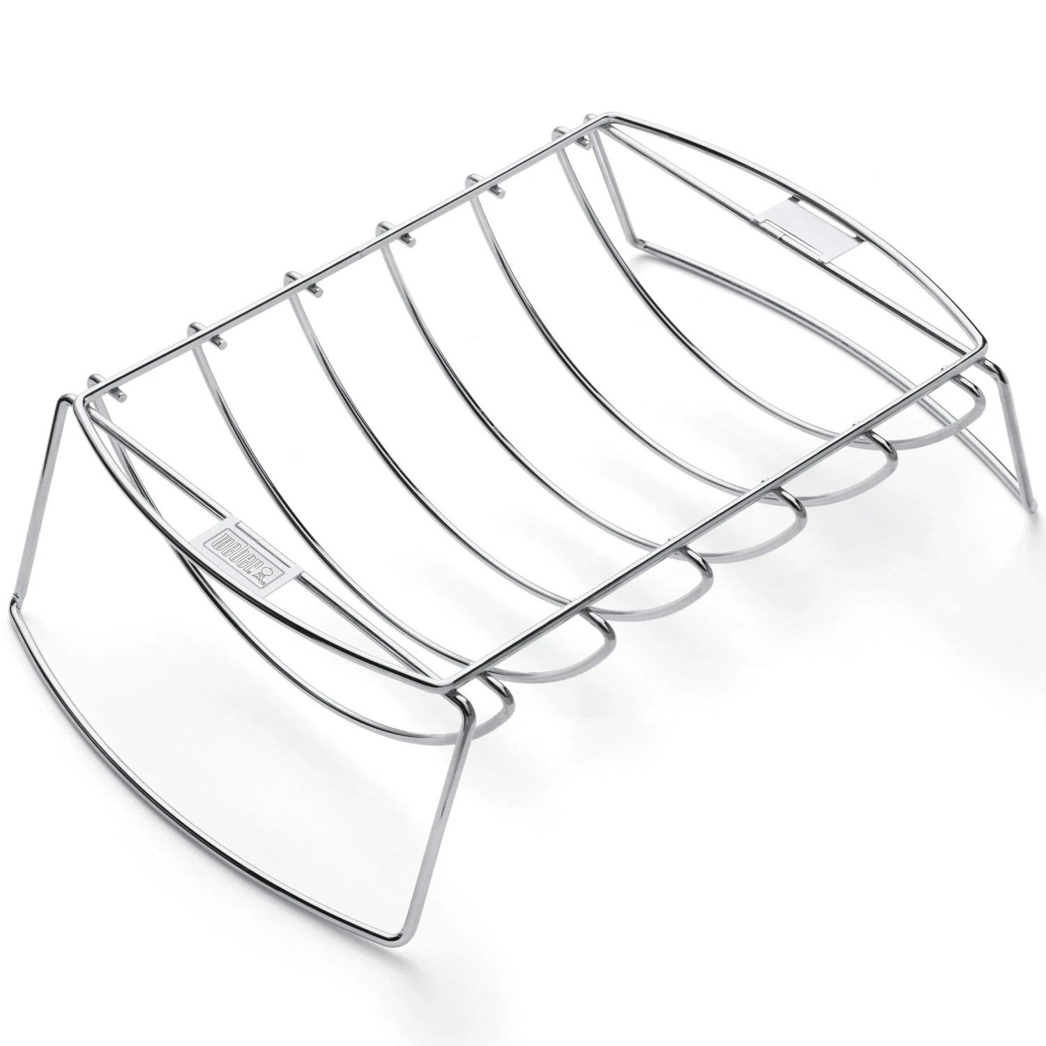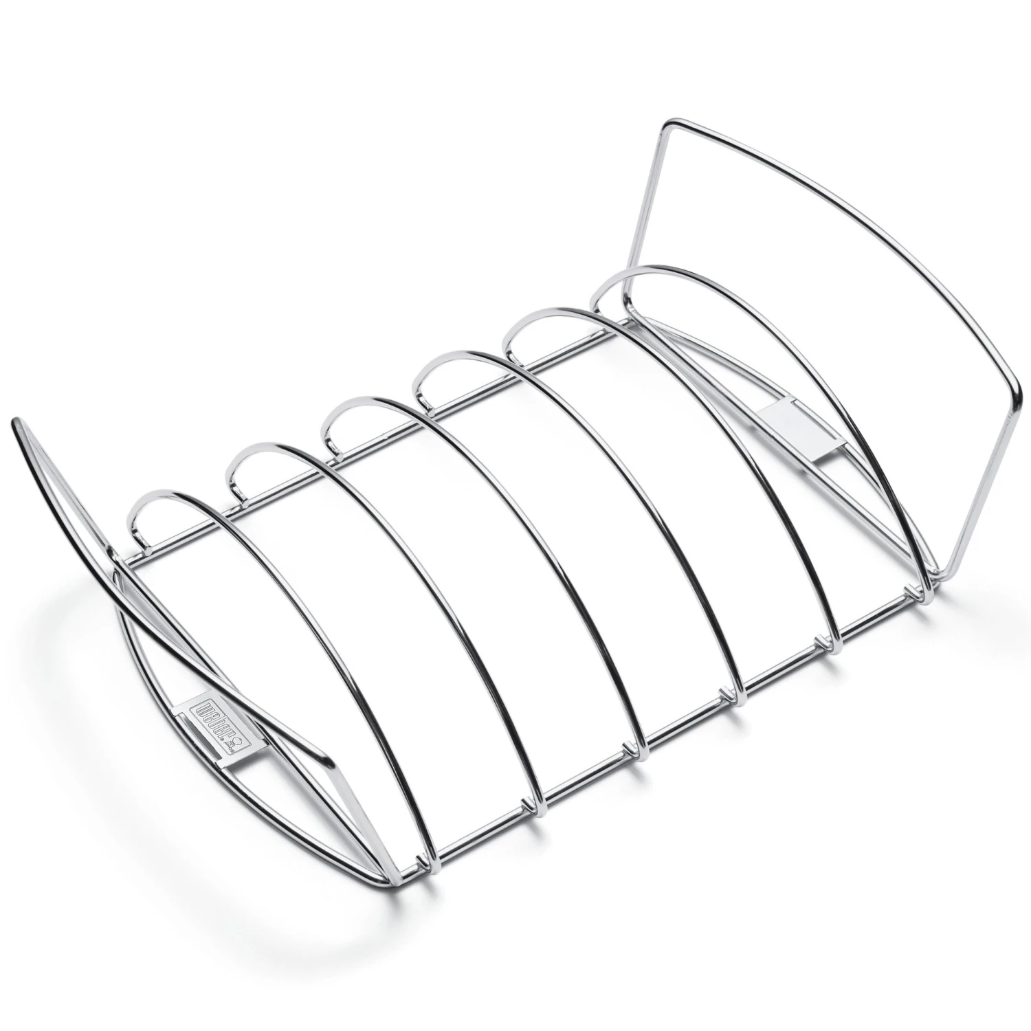 The heavy gauge, nickel plated steel rib rack allows you to stand ribs, chops and chicken pieces in an upright position. Creates up to 50% more usable cooking area. Turn it upside down to create a roast holder that makes it easy to lift roasts on and off the barbecue.