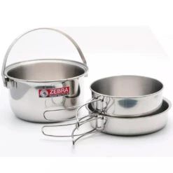 This quality camping set packs away into an included storage case and includes 2 pots and a pan.